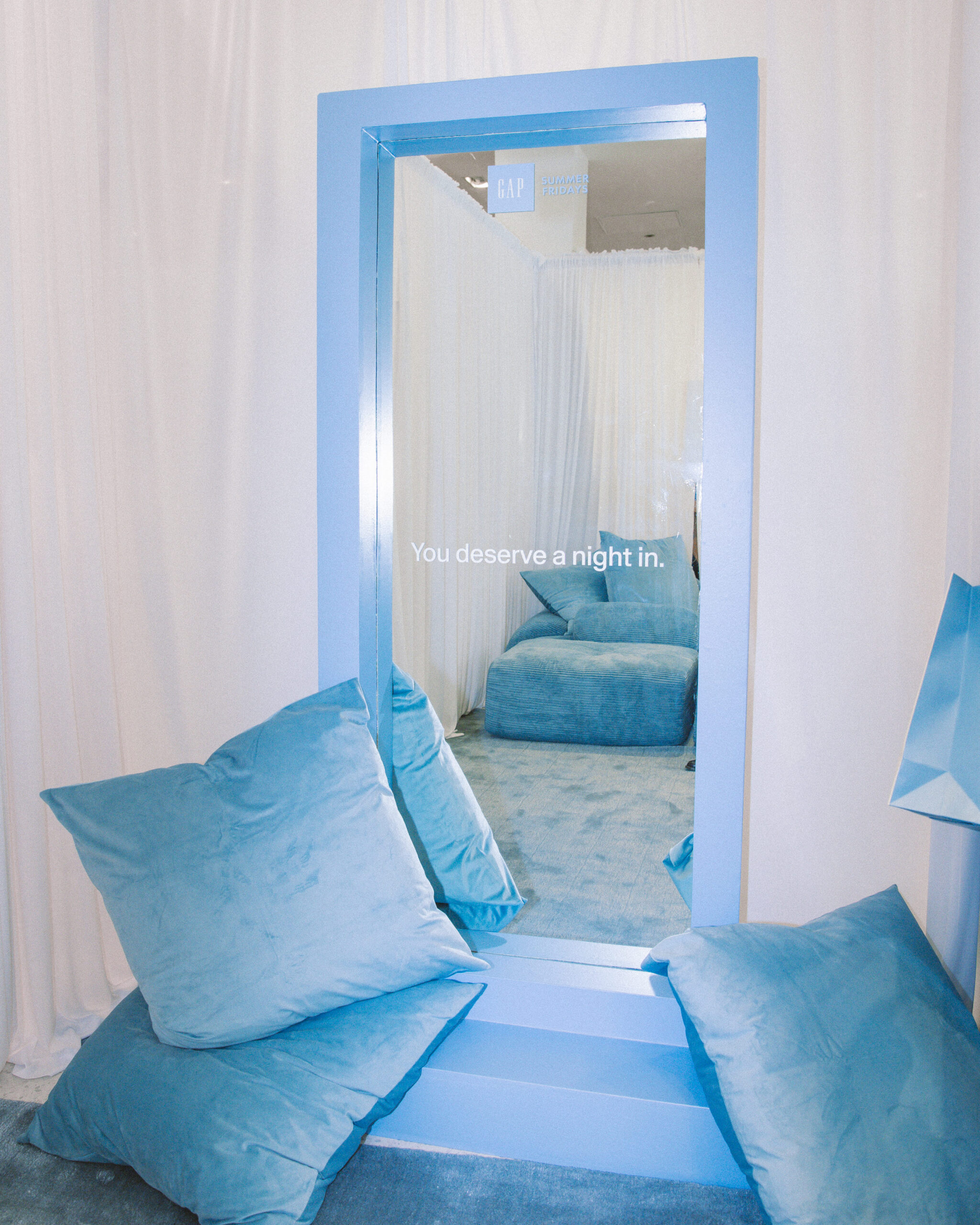 Gap and Summer Fridays turned The Grove into a stay-in sanctuary celebrating their co-branded collection. CNC designed a soft blue Stay In Lounge inside the store, complete with a cocoa cart, curated product styling, and me-time gifting moments, creating a space that felt calm, warm, and instantly shoppable.
